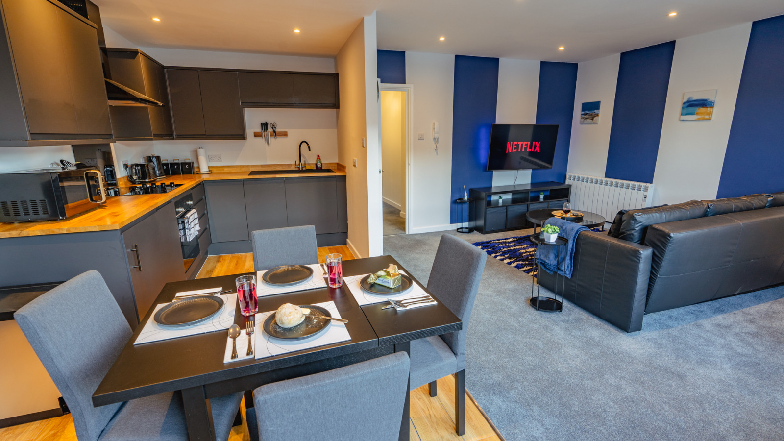 October 2025 4.00Great city center location with plenty of space. Positive: The location was right in the middle of city center with access to most attractions within a few minutes walking distance. The host was quite responsive when we experienced an issue with a nearby building alarm going off. The kitchen was easy to navigate, plenty of workspace, had all cookware necessary. Shopping was close by and easy to get to get to. Negative: While the location was a positive for access to all the wonderful things to see in Cardiff, the noise level from the nightlife was a bit much for our tastes. The nice thing about the apartment (as a couple), you could close the door between the living room and the hall to block a good majority of the noise. However, if you are traveling as a group, the people staying in the living room might want to invest in a good set of earplugs or noise cancelling headphones.