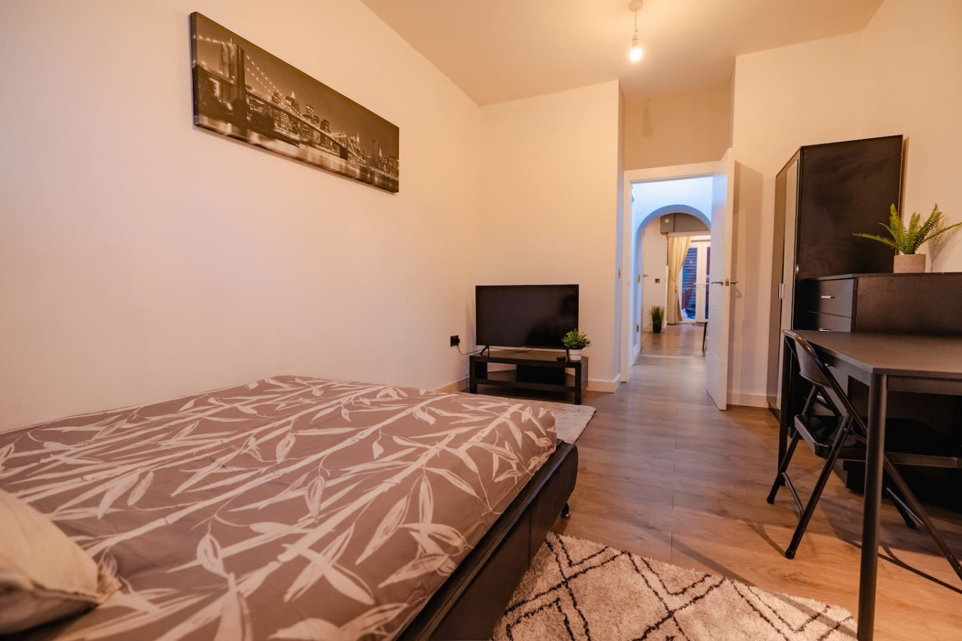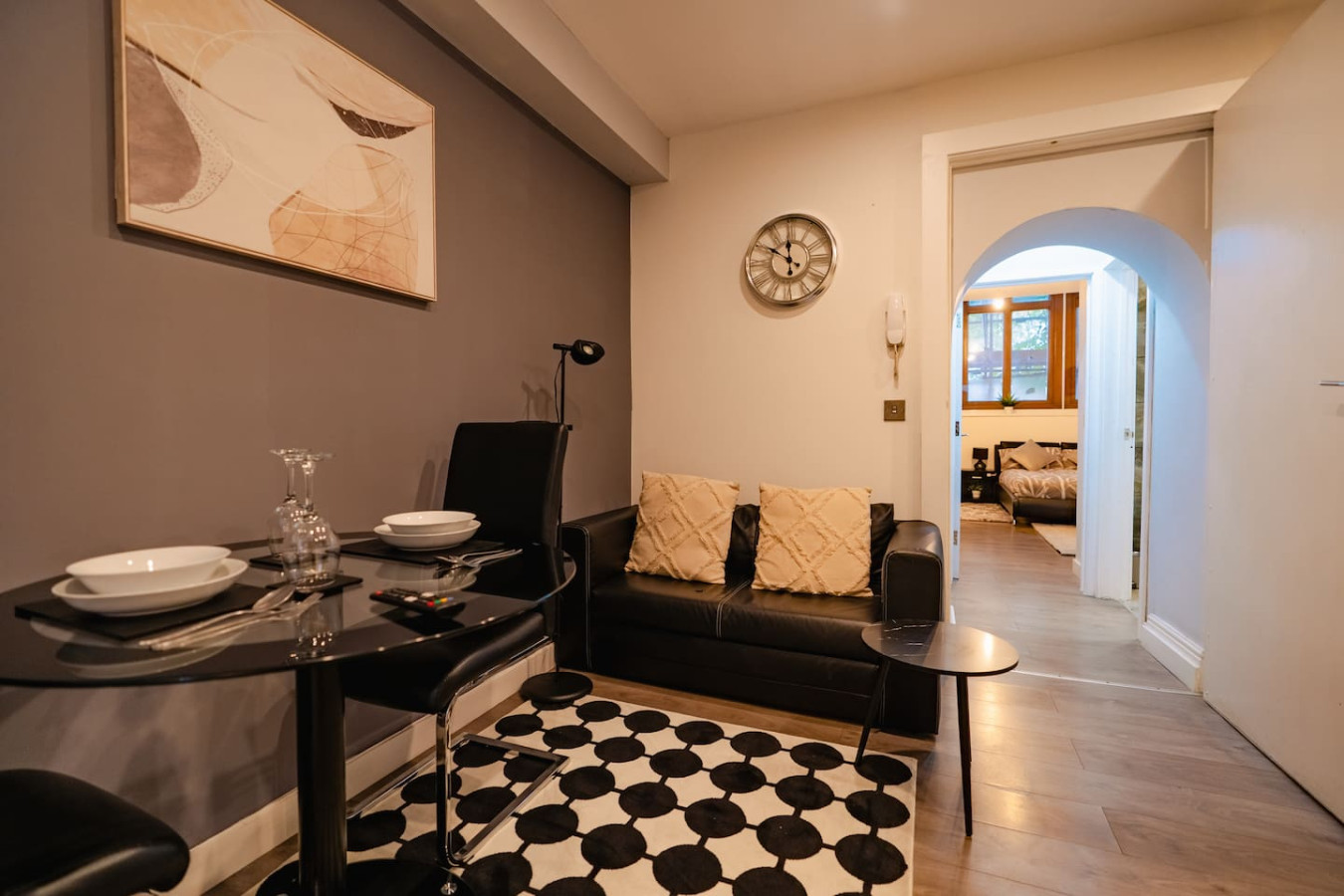 / nightStay in this bright, modern one-bedroom apartment near Cardiff City Centre. Enjoy self-check-in, free Wi-Fi, a fully equipped kitchen, and a comfy double bed — everything you need for work or leisure. Just minutes from Cardiff Castle, Principality Stadium, shops, and cafés. A stylish, spotless retreat perfect for couples, solo travellers, and business guests. Welcome to your Cardiff home-from-home — a bright, stylish one-bedroom apartment perfectly located near the city centre. Step inside and unwind in a calm, modern space designed for comfort and ease. The open-plan living area features cozy seating and a smart TV, ideal for relaxing after a day exploring. Cook your favourite meals in the fully equipped kitchen, complete with modern appliances and all essentials. The spacious bedroom offers a plush double bed with soft linens for a peaceful night’s sleep, while the sleek bathroom comes stocked with fresh towels and toiletries. You’ll have the entire apartment to yourself with self-check-in, free Wi-Fi, and all the comforts you need for a seamless stay — whether you’re visiting for work, a weekend getaway, or an extended stay.